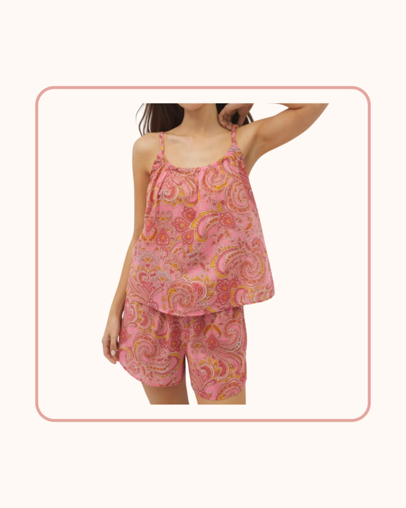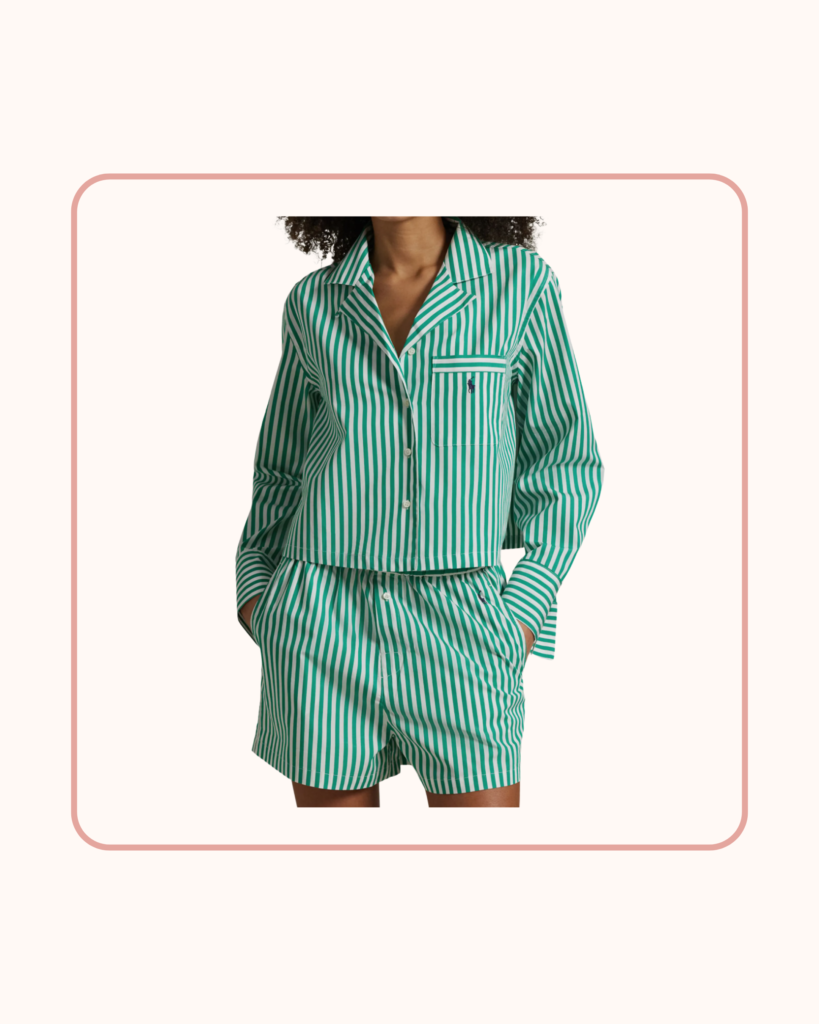 When temperatures climb, a short pajama set can make a noticeable difference in comfort. The structured cotton fabric gives the set a slightly tailored look, making it equally suited for lounging and for sleep. This pair is selling out fast.
