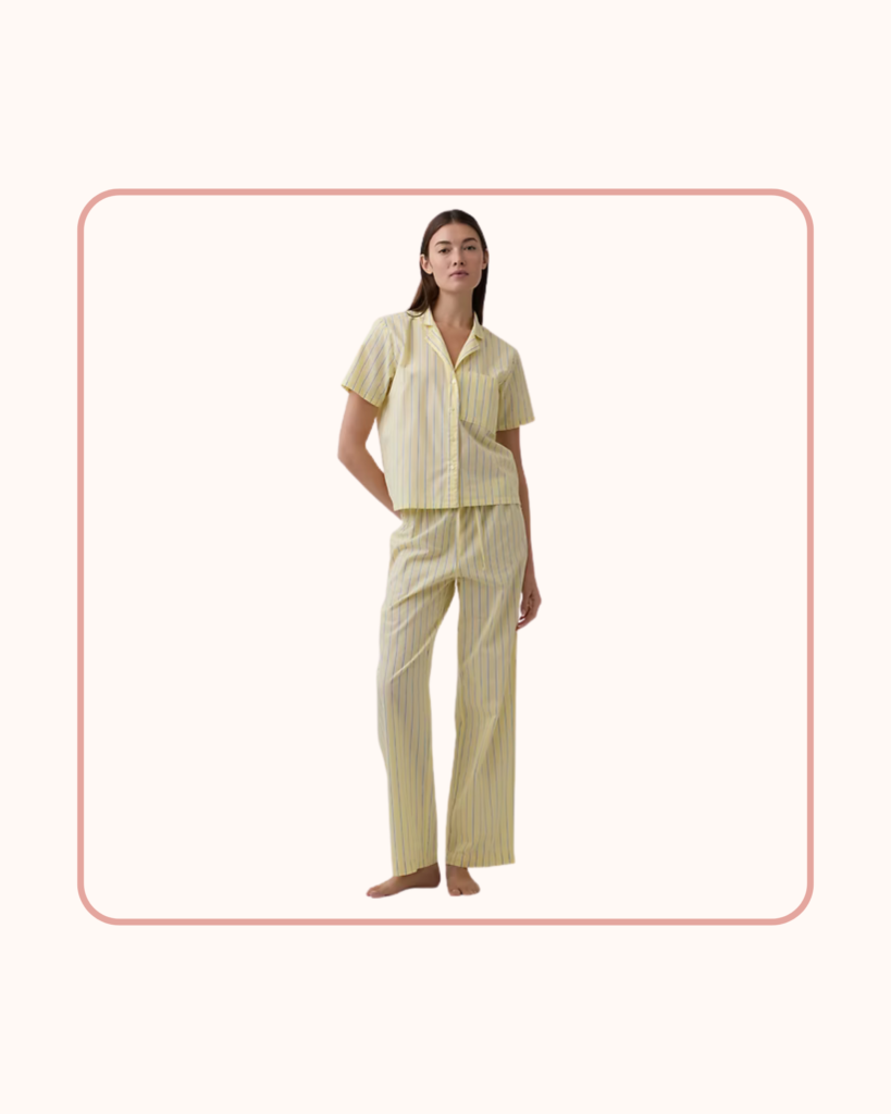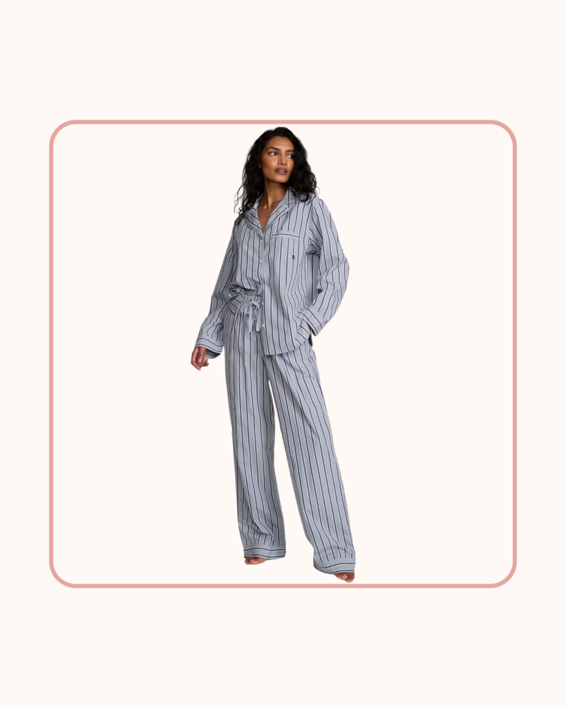 Good sleepwear doesn’t have to come with a luxury price tag. This poplin pajama set offers the familiar button-down style many people associate with traditional pajamas, but at a more accessible price point. The lightweight cotton fabric keeps things comfortable and casual.