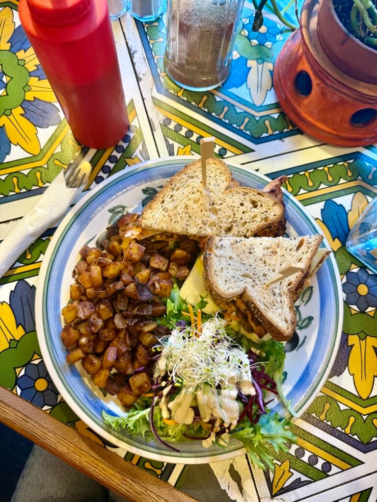 This cozy restaurant offers a playful twist on café classics. Whether you’re stopping in for a sandwich with your afternoon coffee or settling in for a Portuguese-inspired dish in the evening, the menu carries a flavorful, slightly spicy edge. The chicken sandwich is a perfect lunch option, while the Mexican crêpe makes for a satisfying dinner.